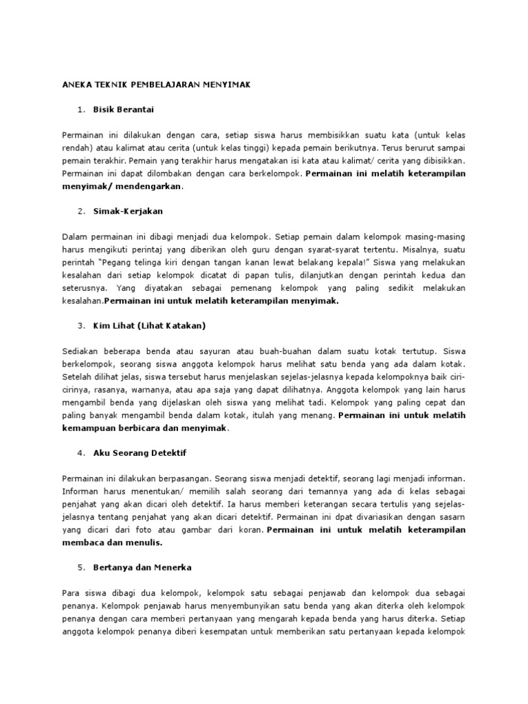 Permainan pesan berantai untuk meningkatkan ketrampilan menyimak pelajaran bahasa.